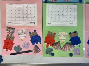 前回より2ヶ月分一緒に作るようになり今月は来年の1月と2月のカレンダーでお正月の雰囲気と節分を取り入れたカレンダーです?‼