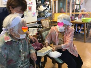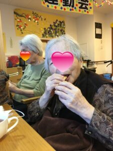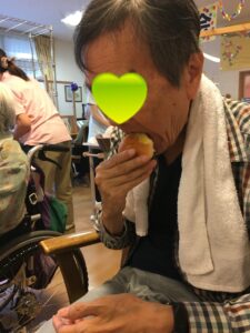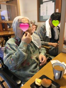 おやつはパン食い競走で取ったパンを召し上がっていただきました![]()