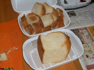 パンを焼く事(パン焼き機だよ~ん(^^)/)から始め、じっくりと焼き上げたパンを使って作りました✌