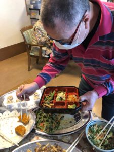 ゲスト様皆楽しまれ、順番に料理を取って頂きメニューを選んでいる際に
