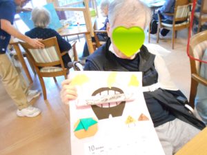ラ・ソーラもりぐちデイサービスでは10月のカレンダーの制作を行いました?