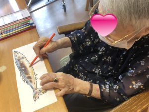 サンマは塗り絵で皆さんそれぞれおいしそうなサンマを作られていました?