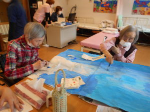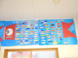 先週は端午の節句が近いので鯉のぼりの壁画制作を行いました?