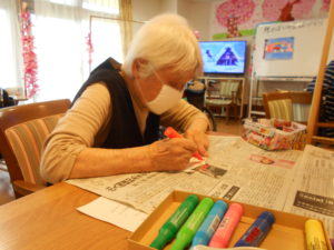 ひとりひとり鯉に色を塗ったり、折り紙を貼ったりと個性溢れる鯉を作っていただきました?