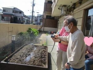 お昼からはお天気が良かったので、テラスに植えているジャガイモに水やりをしました。
