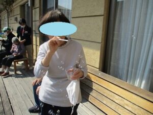 水やりだけでお部屋に入るのはもったいないので、シャボン玉をしてゆっくりとした時間を過ごしました
