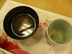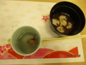 3月17・18日はおやつレクで桜茶とぜんざいが提供されました✨