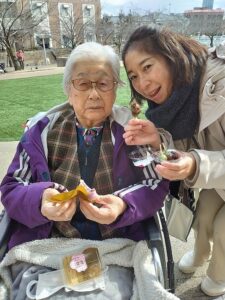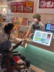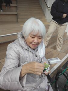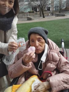 ハーゲンダッツを買うゲスト様・イチゴ大福が大好きと仰り「美味しい」とほおばるゲスト様