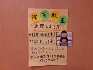 コロナが流行し中止していた陶芸教室が今月から再開になり、以前参加していたゲスト様より「うれしい」