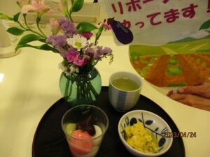 出来た卵とじはおやつの三色団子と一緒にいただきました