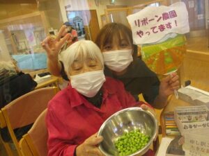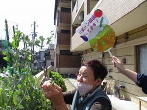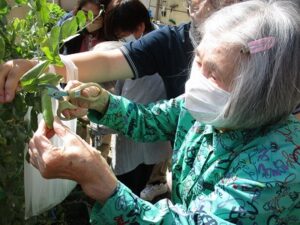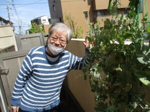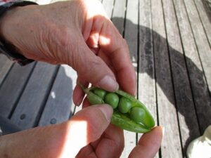 テラスで育てていたエンドウ豆がいっぱい実っていたので、ゲスト様と一緒に4月23日に収穫しました❣