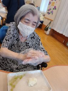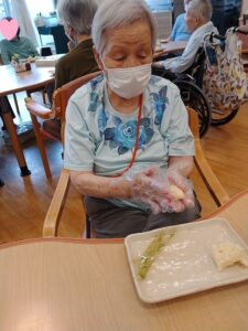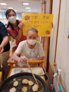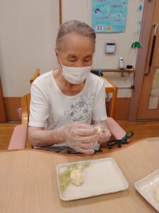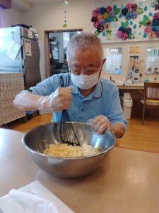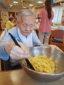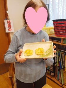 おやつレクで「じゃが芋餅作り」を皆さんで楽しく、美味しそうに出来ました。👏👏
