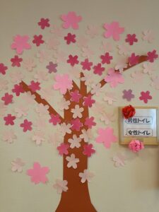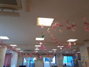 フロアーの中は・・・もうすでに桜が満開みなさんと作りました一足先に桜のお花見気分です