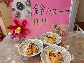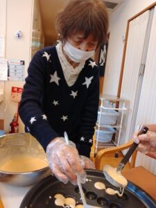 ホットケーキミックスを使い生地を作り、タコ焼き器で鈴カステラを焼いて頂きました