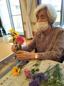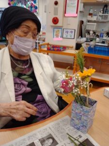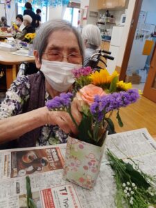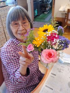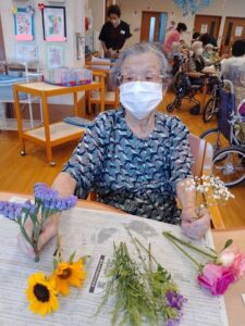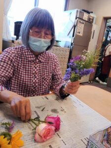 フラワーアレンジメントを行いました。今回のお花は凄く豪華で、大きな花でした。