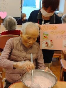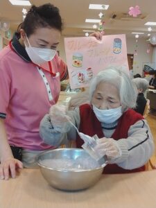 14日と15日におやつレク「フルーチェパフェ作り」をしました![]()