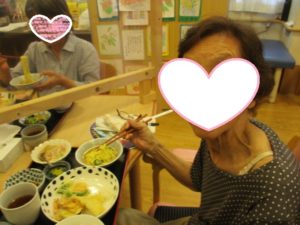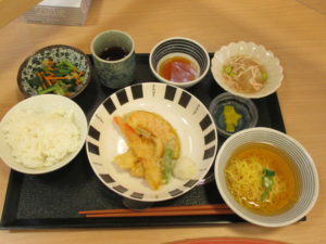 ・ご飯 ・小さなそうめん ・天ぷら ・冬瓜の枝豆あんかけ ・小松菜の辛し和え ・七夕ゼリー