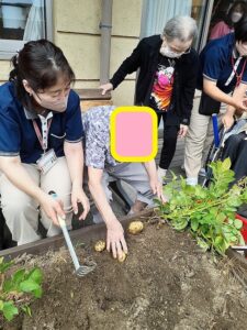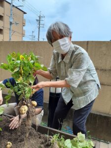 6月28日にお天気が良かったので、リボーン農園で育てていたジャガイモをゲスト様と一緒に収穫しました