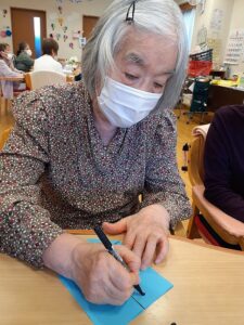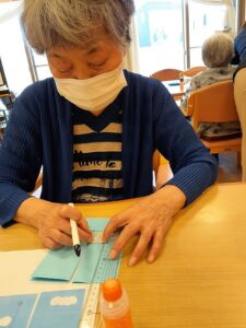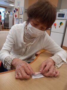 最初は皆さんにこいのぼりを折り紙で折って頂きました。