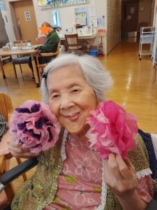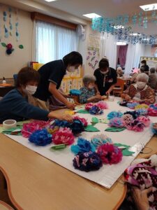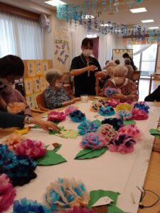 「破れそう」・「上手く広げれるかな?」等の声が聞こえましたが、素敵な紫陽花が出来ました![]()