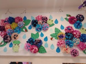 とっても可愛い6月にぴったりの壁面が完成しました![]()