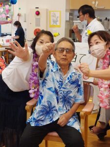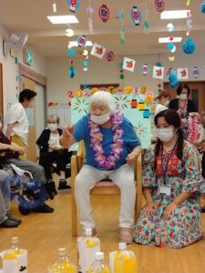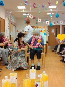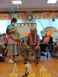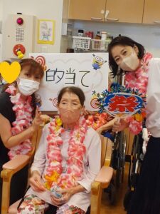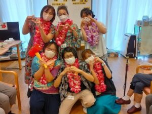 テーマをハワイをイメージし、夏っぽい衣装にスタッフが着替え雰囲気を替え楽しんで頂きました