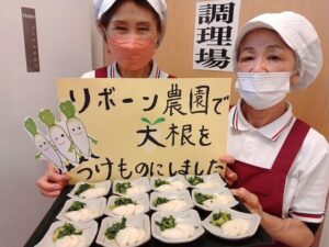 こちら収穫できた大根は綺麗に土を落とした後、厨房に持っていきリボーンのシェフに美味しく調理をして頂きました