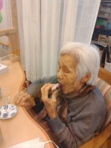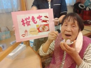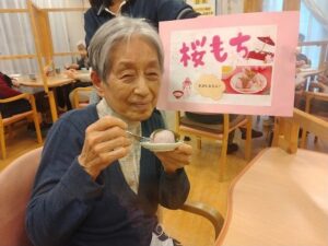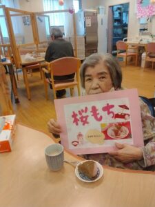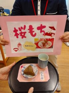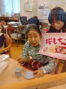 皆さんとってもいい笑顔で桜もちと甘酒でパチリと記念撮影