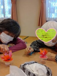 リボーンでは5月9日から11日まで母の日レクリエーションでゲスト様と一緒にカーネーションの小物入れを作りました❣