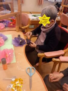 来年まで真っ白なのかと思いきや、スタッフがゲスト様と一緒にたくさんのフラワーを作っています![]()