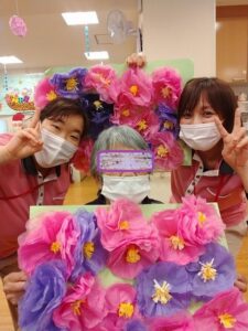 皆様が手伝ってくださったので、短期間で素敵な壁面が完成してました![]()
