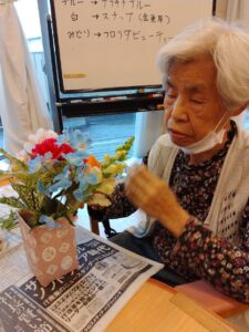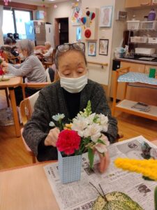 “もうちょっと切った方がいいかなぁ” ”カーネーションは真ん中にするね”