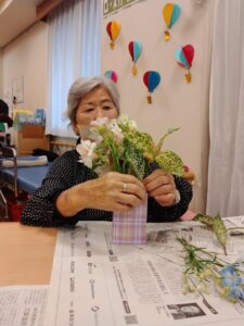 お花を生ける前にハサミで長さを調整したり、お花の向き等を悩まれていましたが・・・