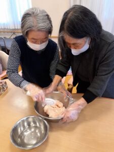 主婦の皆さんとっても手際が良く、あっという間に生地が完成![]()