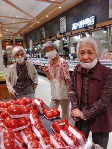 スーパにも寄って、トマト等を見てきました。そうして、最後にお昼はいっぱい食べましたので、広場で軽く運動をしてから戻りました。