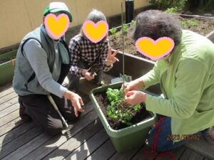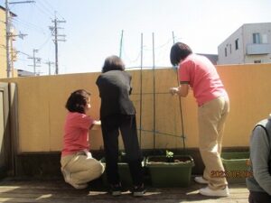 今日はお天気が良かったのでリボーン園芸クラブがリボーン農園できゅうりとトマト・バジルを植えました