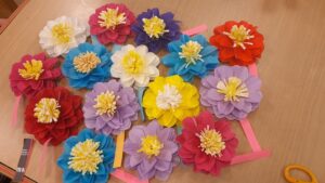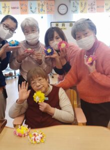 バレンタインに向けてハートの飾り作りや、かわいいお花の飾り作りをしました🌸