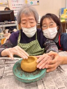 陶芸の先生も来て下さっており、優しくアドバイスやフォローをして下さるので、いつもとっても本格的な作品が出来上がっています![]()