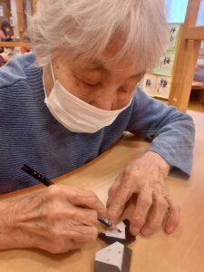顔を書いていただくと、皆さんそれぞれ違う顔のお雛様が出来ました
