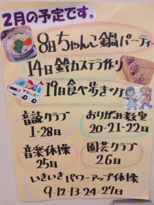 二月に入ったのでゲスト様人気の手作りカレンダー♪