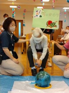 1日目、本当のすいかを割る予定をしていましたが、トラブル発生