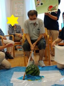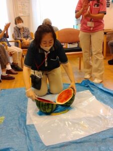 スイカを綺麗に切ってくださり、すいか割りが出来なくなってしまいました
