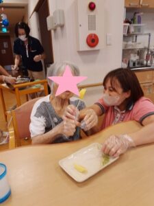 リボーン農園で収穫したジャガイモを使い、7月23日(火)~7月25日(木)の3日間おやつレクを実施しました