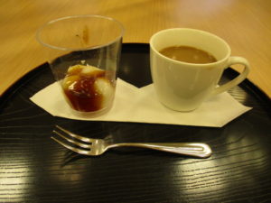 白玉団子をカップにいれて甘辛いみたらしの餡を団子にかけていただく作業をお願いしました‼