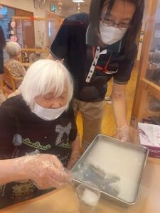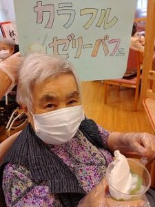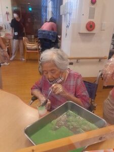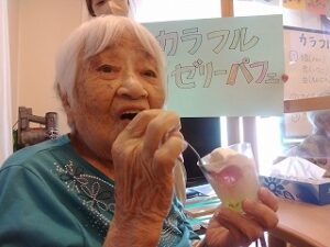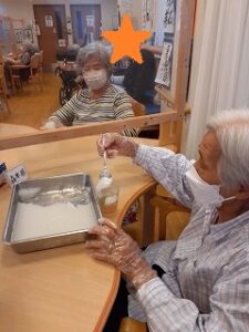 ゲスト様も久しぶりのおやつレクにいい笑顔ですね