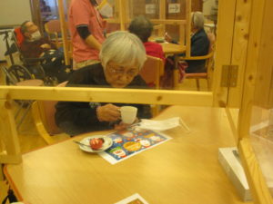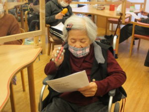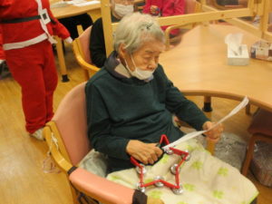 クリスマス会では皆さんに鈴を持って頂き、「ジングルベル」「赤鼻のトナカイ」「きよしこの夜」などの