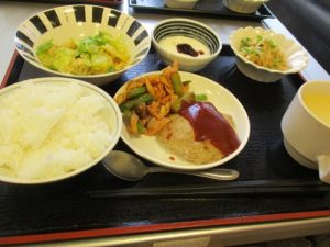 ・ご飯 ・ハンバーグ ・マカロニケチャップ炒め ・サラダ