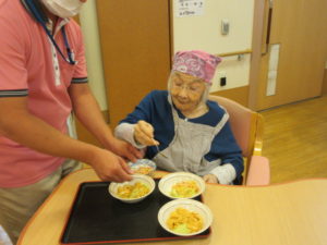 上下肢の体操を20分ぐらいしてから嚥下体操をして昼食??の提供をしています。
