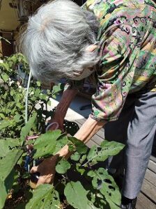20日はリボーン農園で小ぶりのナスができてたので、ゲスト様に収穫していただきました。