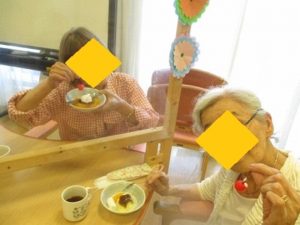 プリンにフルーツやホイップがトッピングしたおやつを厨房さんが用意して下さいました⭐⭐